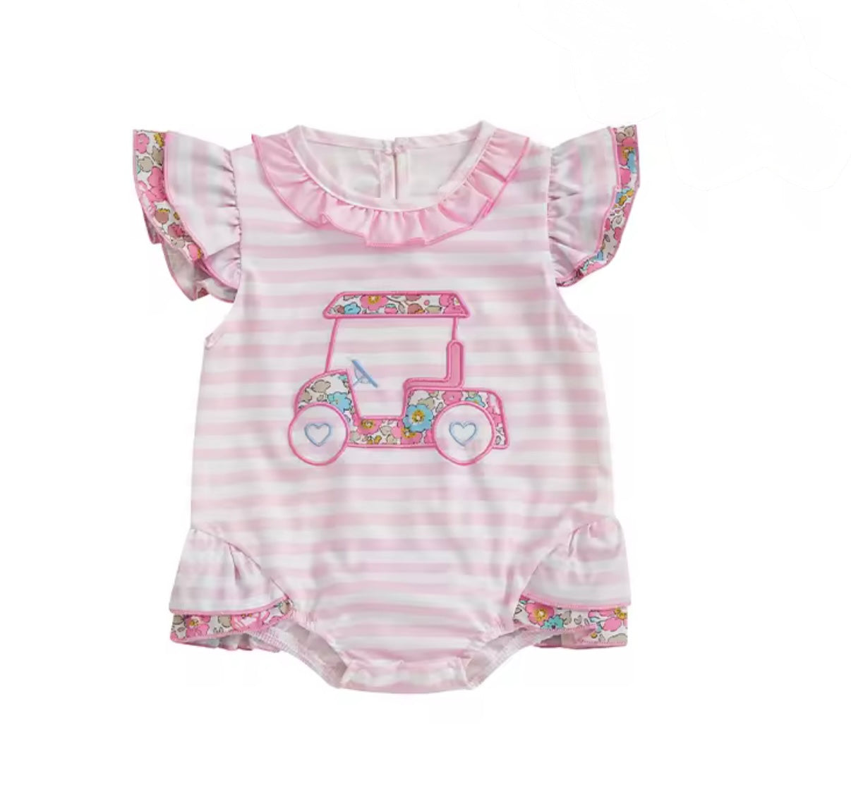 Super cute and super light weight for those hot summer months coming our way! Spend an afternoon of the course in this bubble featuring the cutest ruffles for your little one!