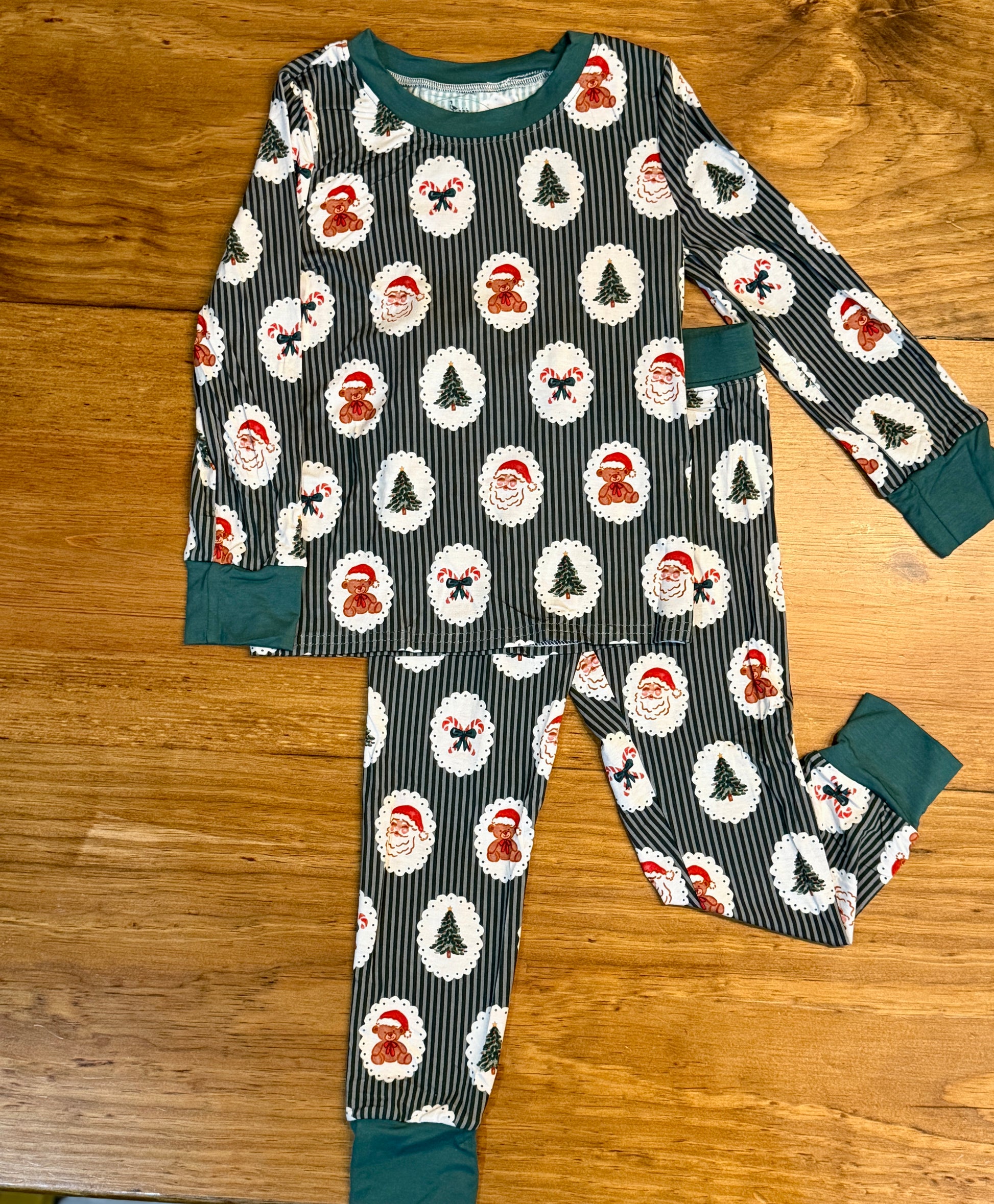 Cozy up with these adorable Christmas jammies! Such a classic Christmas print! Add these to your cart and have a cozy night waiting on Santa!