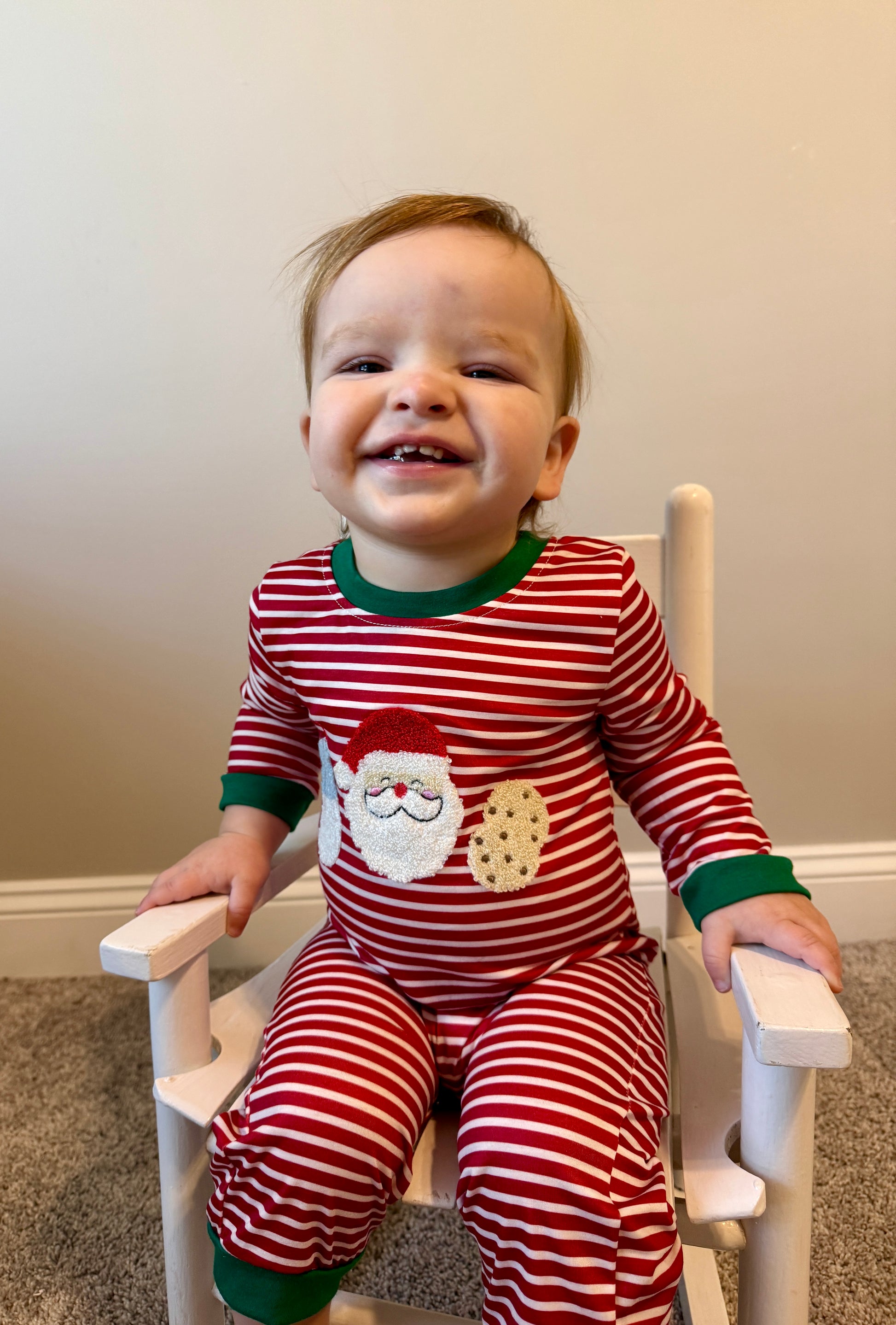 Dress your little one in festive fun with this Red Stripe Santa Milk Biscuit French Knot Romper. Featuring playful red stripes and delicate French knot detailing, this romper combines comfort with charming holiday style. Soft and breathable, it keeps your child cozy while looking delightful all season long.
